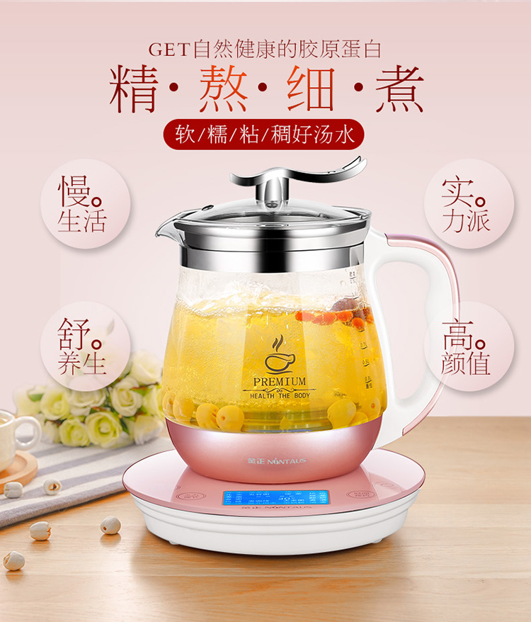 和普通泡茶的区别可大了!普通茶壶泡茶,是“利用”水的热量瞬间激发茶香,每一泡滋味都有层次变化,乐趣在于过程。而养生壶煮茶,更像是“萃取”,通过持续的文火慢炖,把茶叶深层的、泡不出来的物质统统熬出来。就像你炖老母鸡,大火快炒和砂锅慢炖,出来的汤能一样吗?-2 金正养生壶的“花草茶”等模式,就是模拟这种慢炖过程,火力控制得比较柔和。所以,它不是你“泡”茶的替代品,而是解锁茶叶另一种风味的“新工具”。特别适合在冬天,或者想喝一杯极度温暖、醇厚茶汤的时候。我的建议是:好茶先泡,泡淡了再煮,物尽其用,一点也不浪费!