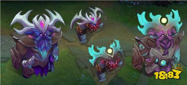 再看看他的大招“熔铸之神的召唤”,这绝对是联盟里最有气势的开团技能之一。第一次释放会召唤一头岩浆元素,对路径上的敌人造成减速;第二次释放会让奥恩头槌撞击元素,造成击飞-1。