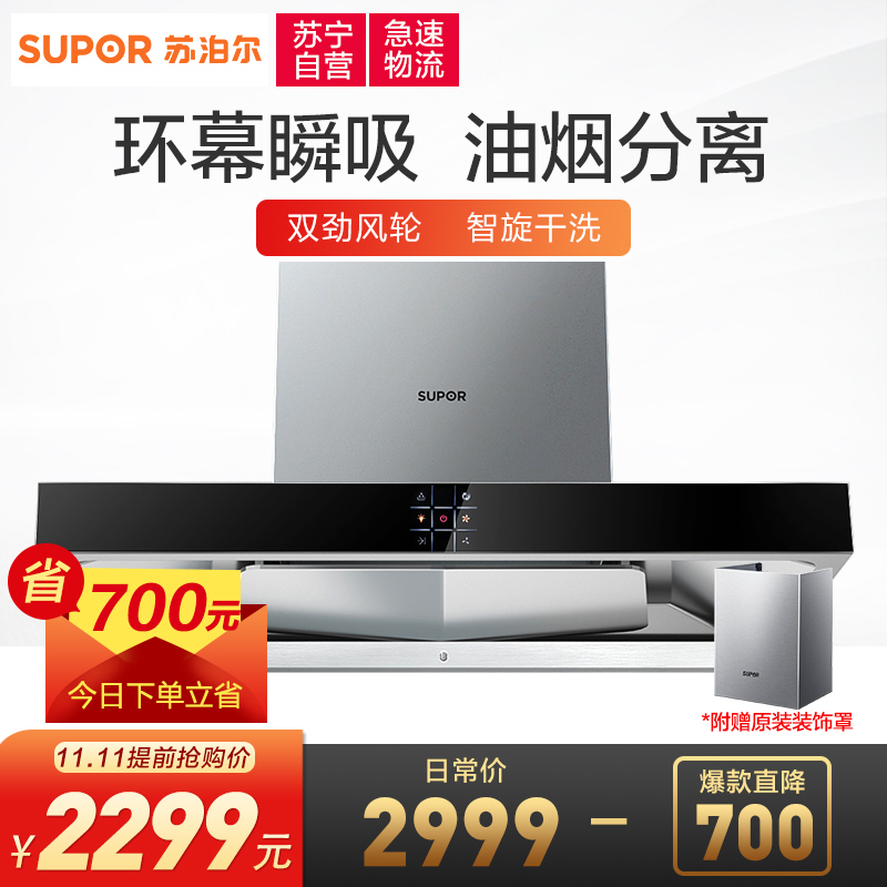 普通油烟机要么从上吸,要么从侧面吸,但苏泊尔这个设计是两面夹击——侧面靠近烟源先吸走大部分油烟,顶面再补刀,把逃逸的余烟一网打尽-8。